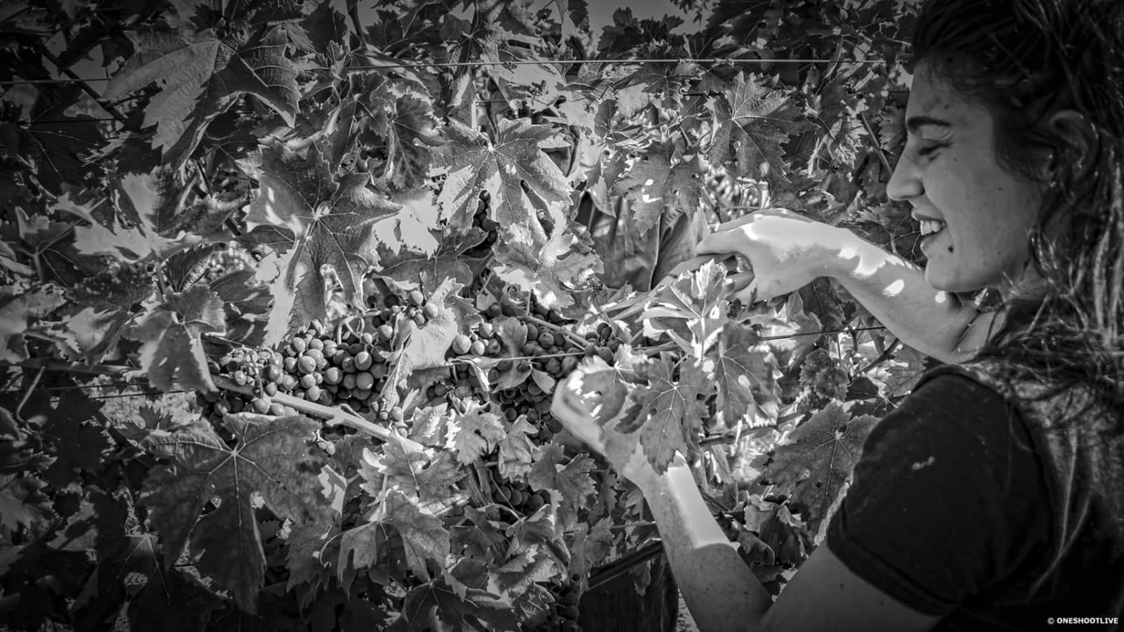 (Lots of shots showing Francesca at different ages in the vineyards with the sun shining and the Apennine Mountains shimmering in the background. Francesca helping pick the grapes in the fall, and watching her grandfather and father make the wine. Great dialogue about wine and life.)